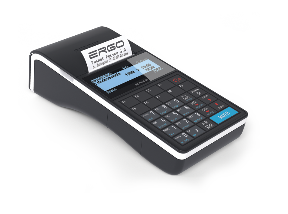Ergo jest urządzeniem bogatym funkcjonalnie. Może działać samodzielnie, jak również stanowić element systemu kasowego. Z kasą współpracują wszystkie niezbędne urządzenia, których możesz potrzebować w sklepie czy poza nim. Konstrukcja kasy umożliwia modułową rozbudowę - klient może od razu zdecydować się na docelowy wariant kasy bądź w miarę rozwoju biznesu uzupełniać jej funkcjonalność poprzez zwiększenie bazy PLU czy dodanie modułów komunikacyjnych (WiFi, Bluetooth lub modem 3G). W wersji rozszerzonej kasa posiada także tunelowanie portów COM.